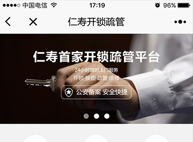 仁寿开锁小程序是一款标准的开锁换锁平台小程序,具备在微信群,好友,朋友圈分享传播的功能,无需下载、即可微信账号自动授权登录使用,也可以注册账号使用,开锁师傅快捷注册入住平台、用户快