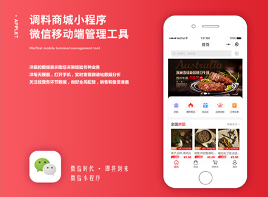 项目名称:调料商城 所属类型:微信小程序 项目设计周期:20天 调料商城是一家是专业从事各种调料生产和网上调料商品销售平台,是藤椒油、花椒油、香油、火锅油碟等综合性的电商平台。作为连接