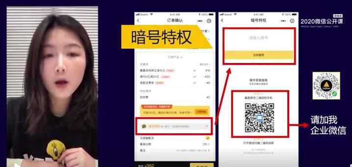 第一、扫码领券:当顾客进店,准备用手机扫码点餐的时候,门店店员就会迎上去说:“你好,请扫桌面二维码,领取一张20元的优惠券,立即可用的哦”当店员服务态度比较好的时候,大部分顾客都愿意去扫二维码,添加店员企业微信,进入群聊,领取优惠券,更多定期的福利和特权,会在群里告知。