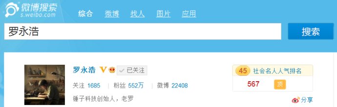 2014年3月罗永浩的粉丝数:552万