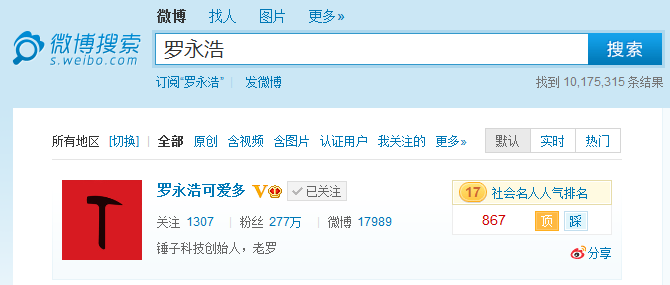 2013年3月罗永浩的粉丝数:277万
